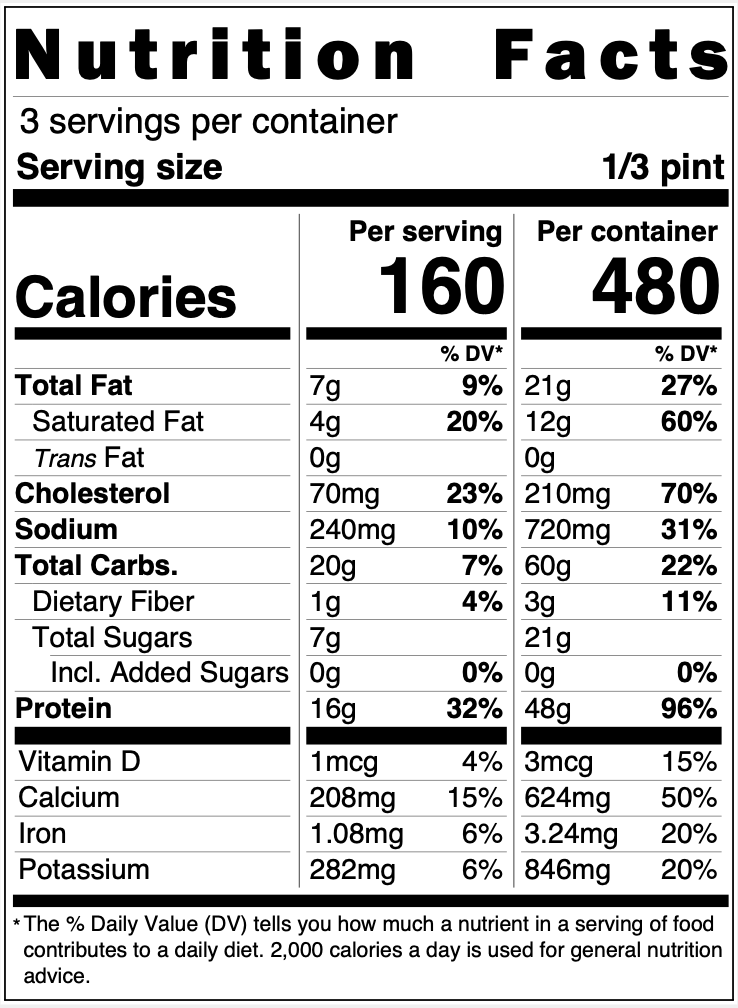Ingredients: Whole Milk, Whey Protein Isolate, Allulose, Cocoa Powder, Erythritol, Heavy Cream, Monk Fruit Extract, Vanilla Bean Paste (Cane Sugar, Vanilla Extract, Vanilla Bean Seeds), Stevia Leaf Extract, Egg Yolk Powder, Salt, Guar Gum, Xanthan Gum.